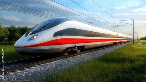 Fototapeta premium High-speed train, a symbol of futuristic travel amidst lush landscapes