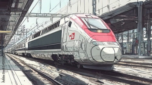 Fototapeta premium High-Speed Train Arriving at the Station