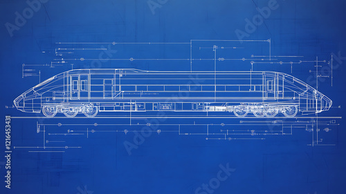 © Abul, Naklejka premium High-speed train blueprint on blue background