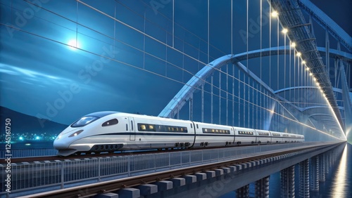 © Thanawat_Suesoypan, Fototapeta premium High-speed train crossing a modern bridge at night