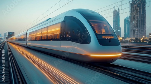 Naklejka premium High-Speed Train: Futuristic City Travel, Modern Railway System, Urban...