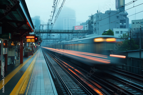 © Ala, Obraz premium High speed train gliding through urban landscape during twilight hours