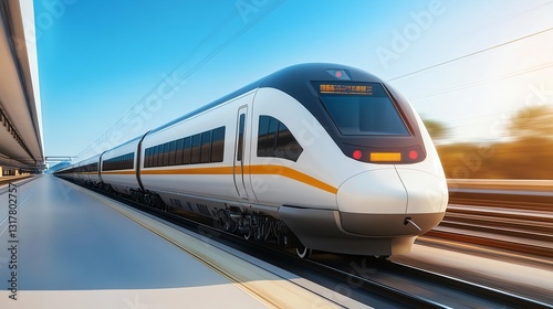 © terat, Fototapeta premium High-Speed Train, Modern Railway Travel - Motion blur