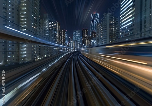 Fototapeta premium High-Speed Train Motion Blur Cityscape at Night