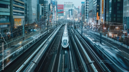 © Nisa, Fototapeta premium High-speed train network interface, visualizing the seamless integration of maglev technology across an urban landscape Generative Ai