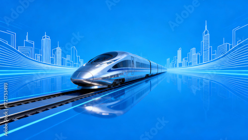 Fototapeta premium High-speed train passing through city landscape