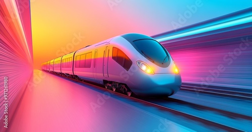 Fototapeta premium High Speed Train Riding Through a Vibrant Tunnel