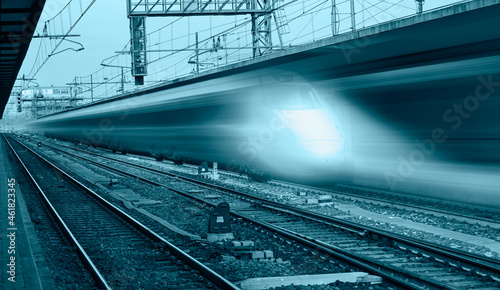Fototapeta premium High speed train runs on rail tracks - Train in motion