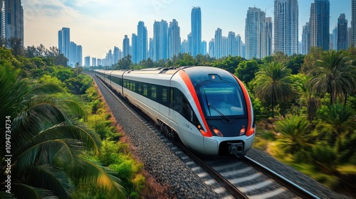 Fototapeta premium High-Speed Train Through Urban Landscape