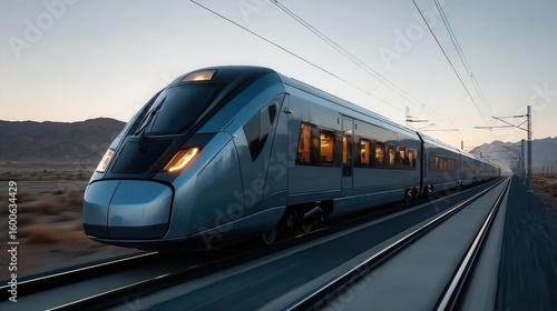 Fototapeta premium High-speed train travels through a vast landscape with a modern design