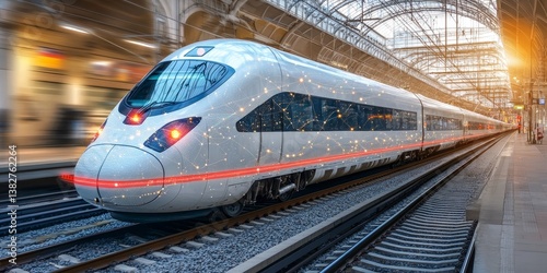 Fototapeta premium High-Speed Train with Digital Network Connectivity, Symbolizing Advanced Rail Travel Technology.
