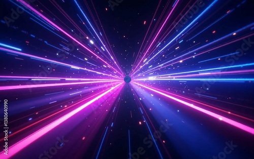 Naklejka premium High-Speed Travel through Futuristic Neon Warp Tunnel in Deep Space – Sci-Fi...