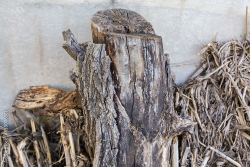 © An-T, Obraz premium High stump of the old tree partly without bark