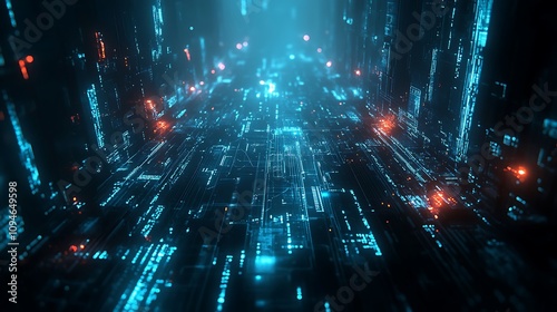 © Kenny Parker, Fototapeta premium High-tech abstract 3d scene with digital connections and glowing blue hues