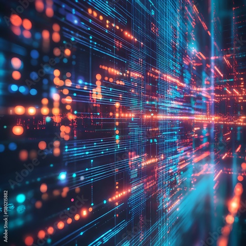 © Nayon, Fototapeta premium High tech abstract data flow illustrated with vibrant colorful patterns