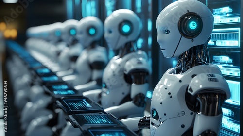 Fototapeta premium High-tech AI-powered robots processing blockchain transactions in a digital environment
