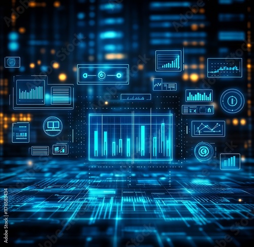 © The Little Hut, Obraz premium High-Tech Analytics Interface with Graphical Data Elements : Generative AI