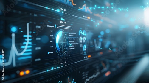 © Achirawee, Fototapeta premium High-tech background featuring an analytics dashboard, indicating brand awareness techniques