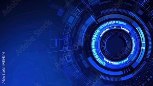 Obraz premium High-tech blue abstract circular design featuring digital elements and...
