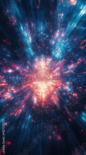 © Dashbow, Obraz premium High tech blue and red starburst background.