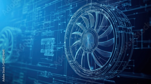 © Thanyaporn, Obraz premium High-Tech Blueprint Design of Jet Engine Fan Concept and Details