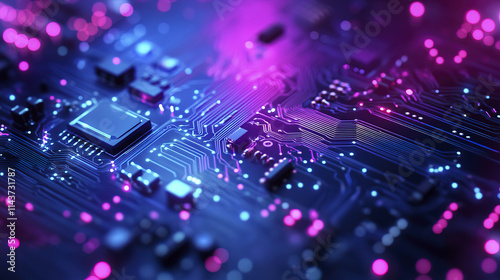 Obraz premium High tech circuit board with blue and purple glowing lights, showcasing...