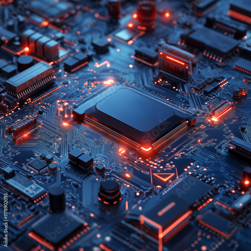 Fototapeta premium High tech circuit board with glowing components and details