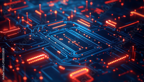 Obraz premium High-Tech Circuit Board with Glowing Elements Depicting Advanced Digital...