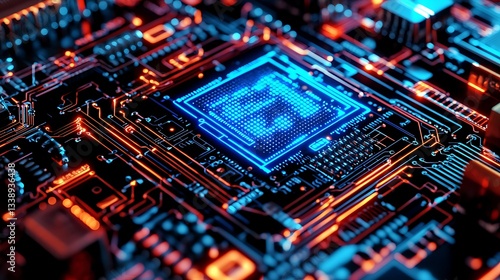 © sarifah, Obraz premium High-tech circuit board with glowing processor