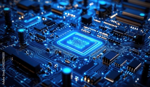 Obraz premium High-tech circuit board with glowing processor