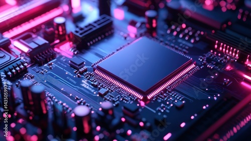 Obraz premium High-tech circuit board with glowing processor (1)