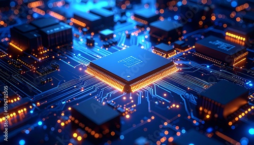 Obraz premium High-tech circuit board with glowing processor