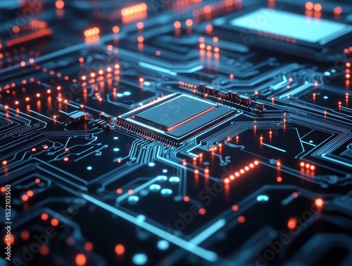 © Liu, Obraz premium High-Tech Circuit Board with Illuminated Pathways