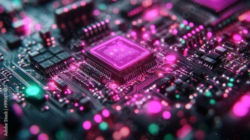 © Tatiana Vagizova, Fototapeta premium High-Tech Circuit Board with Pink Neon Glow Generative AI