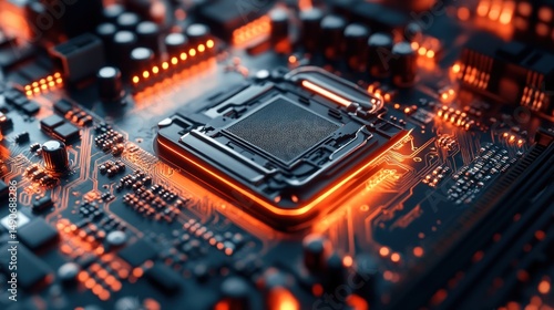 © A B I G A I L, Obraz premium High-tech computer circuit board with glowing processor