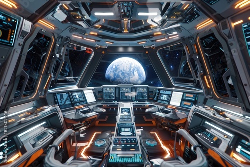 © MrHamster, Fototapeta premium High-tech control room inside the space station