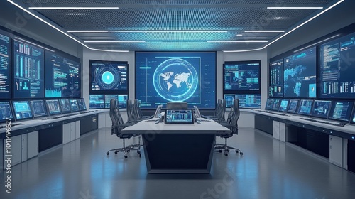 Fototapeta premium High-Tech Control Room with Digital Displays