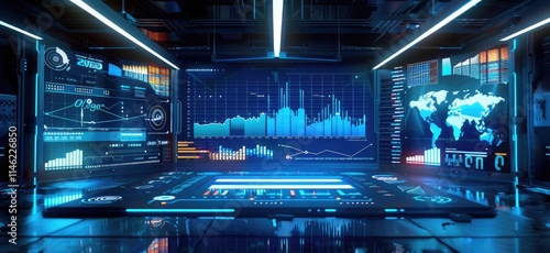 © Muhammad, Obraz premium High-tech control room with monitors displaying graphs and various data