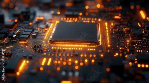Obraz premium High-tech CPU on glowing circuit board