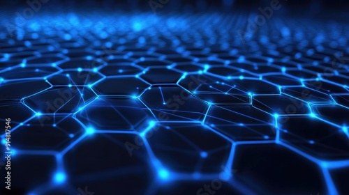 © pinporn manosri, Obraz premium High-tech 3D background with blue hexagons and digital grid, advanced technology design
