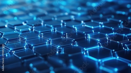 © pinporn manosri, Obraz premium High-tech 3D background with blue hexagons and digital grid, advanced technology design