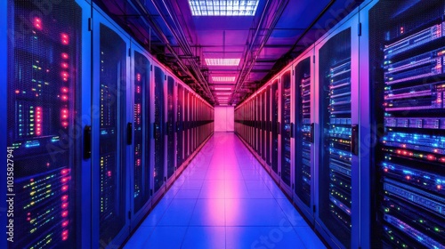Fototapeta premium High-Tech Data Center with Colorful Lighting Effects