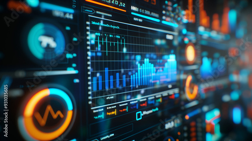 Fototapeta premium High-tech data interface with analytics and interactive graphs in futuristic design