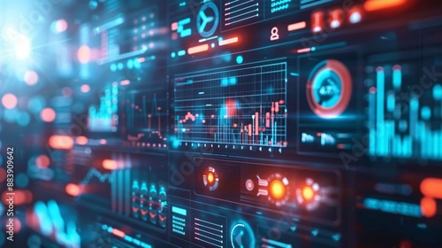Fototapeta premium High-tech digital background with a detailed analytics dashboard,...