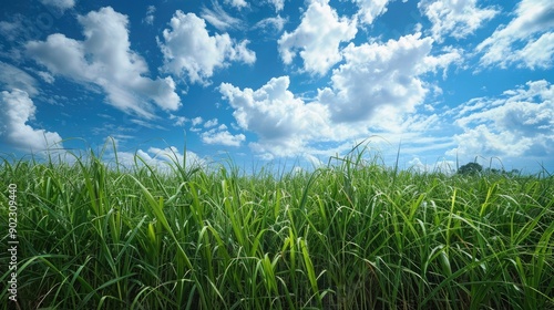 © Khritthithat, Obraz premium High-tech fertilization methods, sugarcane fields, optimal growth, clear skies