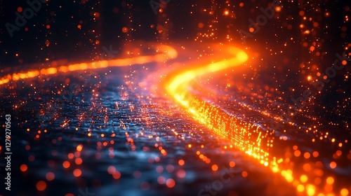 Fototapeta premium High-tech fiber optic cables glowing brightly with light streaks symbolizing...