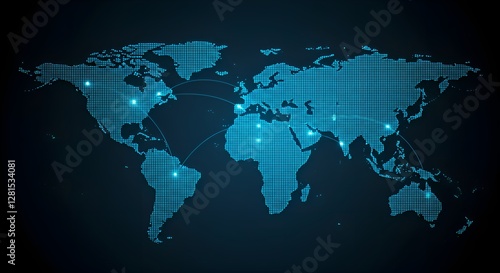 © Rudbari_Graphics, Obraz premium High-tech global network grid with interconnected points forming a digital map of the world