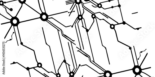 Obraz premium high-tech illustration of a circuit board where sleek black electric lines and pathways connect various components like microchips.