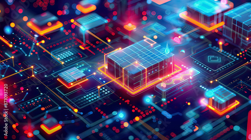Obraz premium High-tech illustration of edge computing featuring real-time data processing and network connectivity with glowing tech symbols