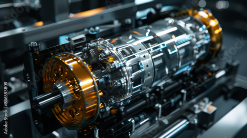 Fototapeta premium High-tech industrial machine part with intricate details, showcasing modern...